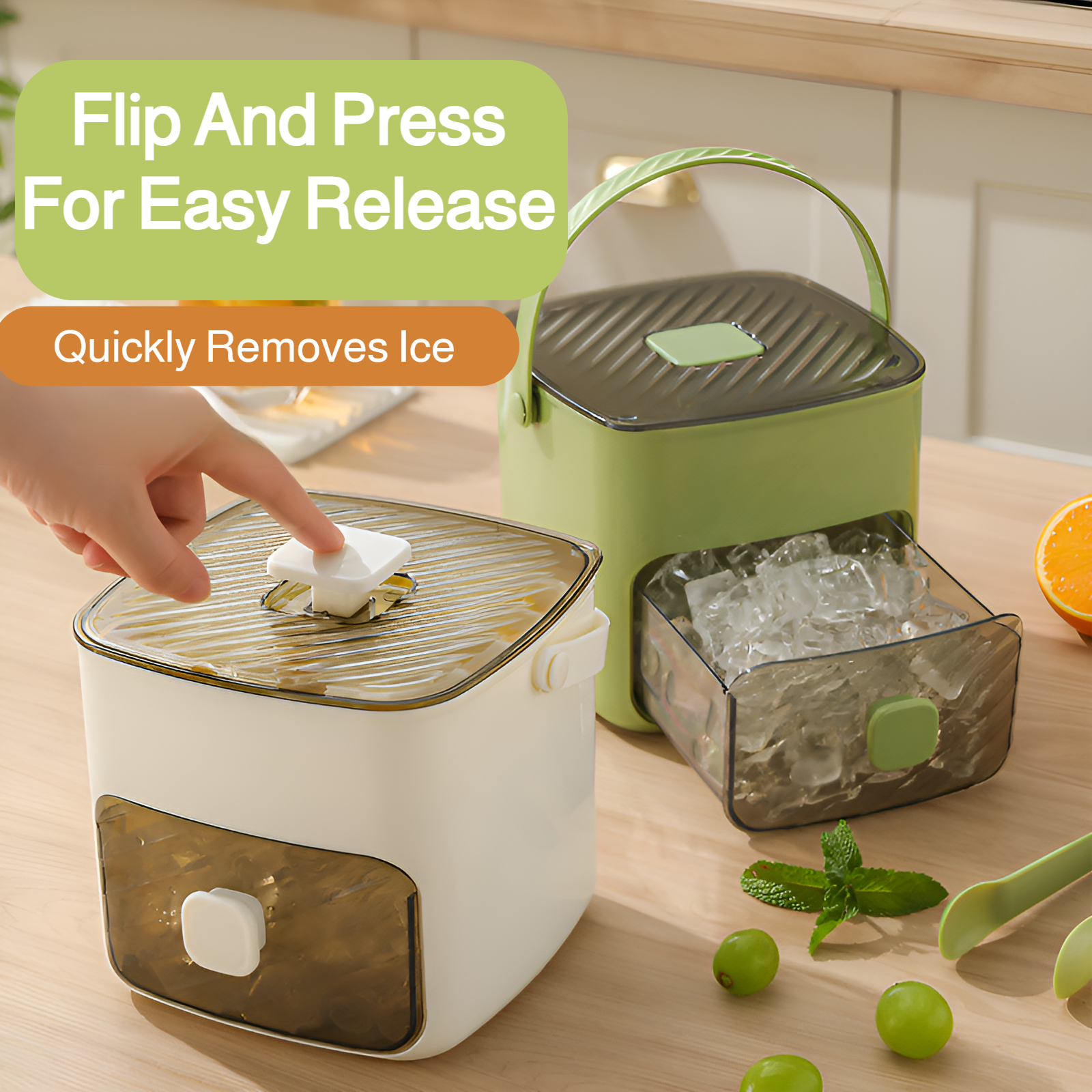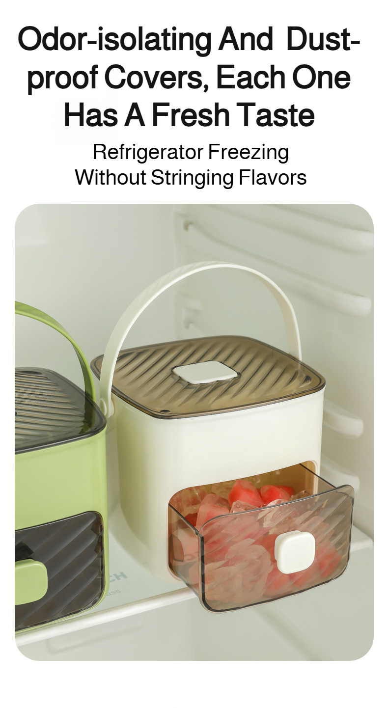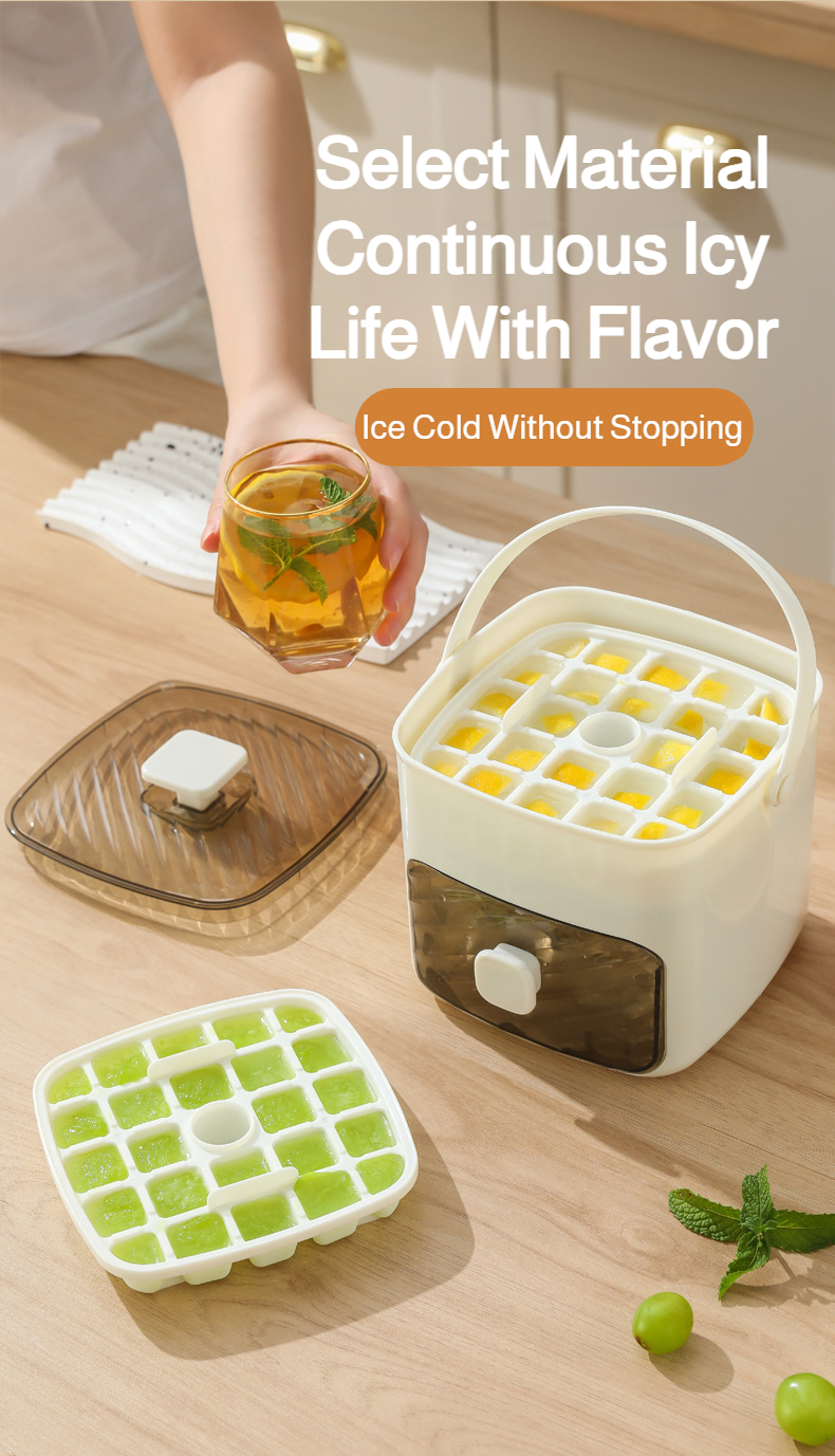 Portable push-type ice tray, ice cube mold, ice box, summer home double-layer ice maker with drawer,